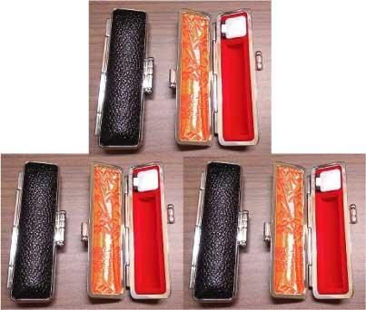 ◎結婚・誕生・入学・就職など、記念のお祝いにオトクなセットとなっています。 3本の書体は下記をご提案します。 10.5mm認印 古印体 (はっきり読みやすい文字) 13.5mm銀行印 印相体 (偽造されにくく、お金を受け貯めるよう横彫刻) 15mm実印 印相体 (偽造されにくい文字) ![]() 上記書体は当店のおススメですが、他の書体を使うならば何がいいか、などはご相談いただけます。 手彫り仕上げは偽造されにくく、機械彫りに比べ印影がはっきりしており、つまりにくく、欠けにくく、長持ちします。 はんこの手彫りと機械彫りがどう違うのかを詳しく図解してみる - seigetsudou 1 購入時に書体・ケース(要・不要)をお選びください 大事な実印を保管するケースは、印鑑をご注文と同時で3点セットで 4,950円(税込)を3,300円(税込)にてご購入いただけます (ケースだけの販売はお断りしています) 2 彫刻する文字欄にお作りするお名前(フルネーム)をお書きください。 銀行印は苗字か下のお名前どちらをお選びいただいて、下記注文チェックボックスよりご注文ください。実印はフルネームで、認印は苗字でお作りします。 記入例→塩野 義博 (苗字と名前の間にスペースを入れてください。) 彫刻できる文字数は5文字までです。6文字以上の場合は別途お見積りいたします。 ◎銀行印は、お金を受け貯める、という意味を込めて、文字を横に配置して彫ります。 タテ彫刻をご希望の方は、備考欄に「タテ彫り希望」とお書きください。 ◎銀行印は一般的には苗字だけを彫りますが、苗字ではなく、お名前で彫ることもできます。 お子様は兄弟姉妹で区別しやすいよう、また、ご結婚前の方は苗字が変わる可能性がございますので、一生お使いいただけるよう、下のお名前でのご注文をおススメします 7〜8営業日ほどで発送いたします。 *印鑑を作る上での注意事項* ・印鑑の印影をお持ちになり、「同じものを作ってください」とのご注文はお受けできません。 ・大量発注の場合、納期・価格は別途ご相談ください。 ・お名前の文字は、正確にお書きください。 一般にない文字もできる限り作字で対応いたします。パソコンなどで入力できない文字は、はっきり正確に手書きしたものをFAXか、写真を撮りメールでお送りください。 ・書体に関しては弊社所定の書体になります。 「印材について」 柘 鹿児島などに生息する木を印材に用いるもので、植物系の印材。 木質は極めて硬く丈夫です。手彫りは黒水牛・象牙の機械彫りより耐久性が良く、鮮明に捺印できます。 彩樺 地球環境の破壊、資源の枯渇を避け、独特の技術で開発された合板印材。強度・精度・安全性とともに満足させる新しい印材です。手彫りは黒水牛・象牙の機械彫りより耐久性が良く、鮮明に捺印できます。官公庁・環境関連企業団体に推奨される印材です。 黒水牛 実印・銀行印に最適。 インドやタイの水牛の角を用いたもので、堅牢で印肉につきのよさに優れています。 漆黒の趣が朱肉の赤と対比的で、昔から重宝がられてきました。 耐久性・硬度・粘りともに優れた印材で、角の先端の芯の通った中心部が芯持ちと呼ばれる高級品です。当店では、芯持ち高級材料を使用しておりますので、改刻もできます。 象牙 印鑑の材料としては最高級品。実印・銀行印に最適。 ねばりがあり印肉のつきが非常によく、しかも耐久性があり、改刻もできます。当店では最もキメの細かい上質材料を使用しております。 現在、象牙はワシントン条約にて、日本国外への輸出は原則禁じられています。象牙製品を日本国外へ持ち出すことは外為法違反となりますことをご了承ください。 おススメの書体 ![]() 参考書体 認印 ![]() 銀行印 ![]() 実印 ![]() その他のおトクなセットは価格表一覧(個人印)をご覧ください。 |
